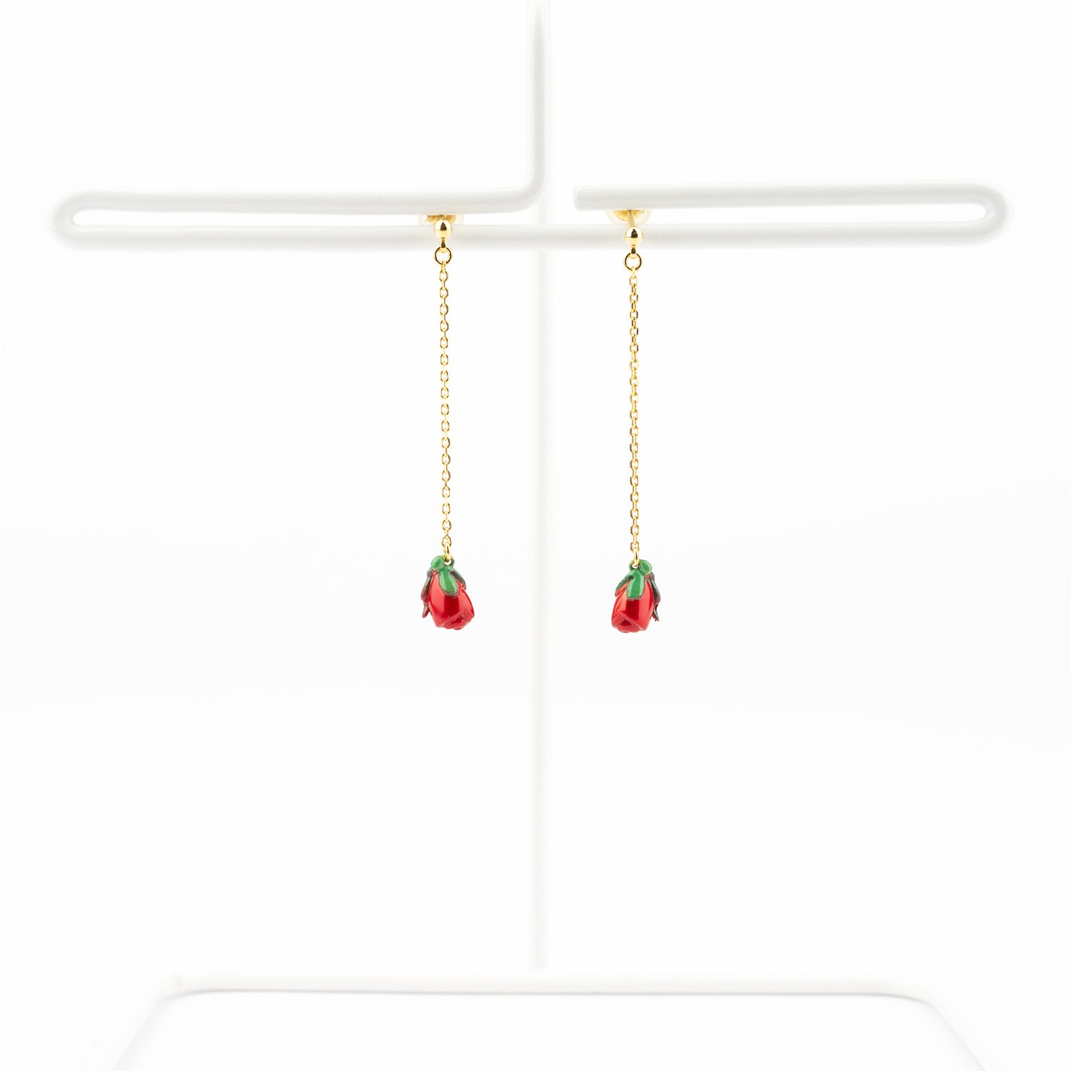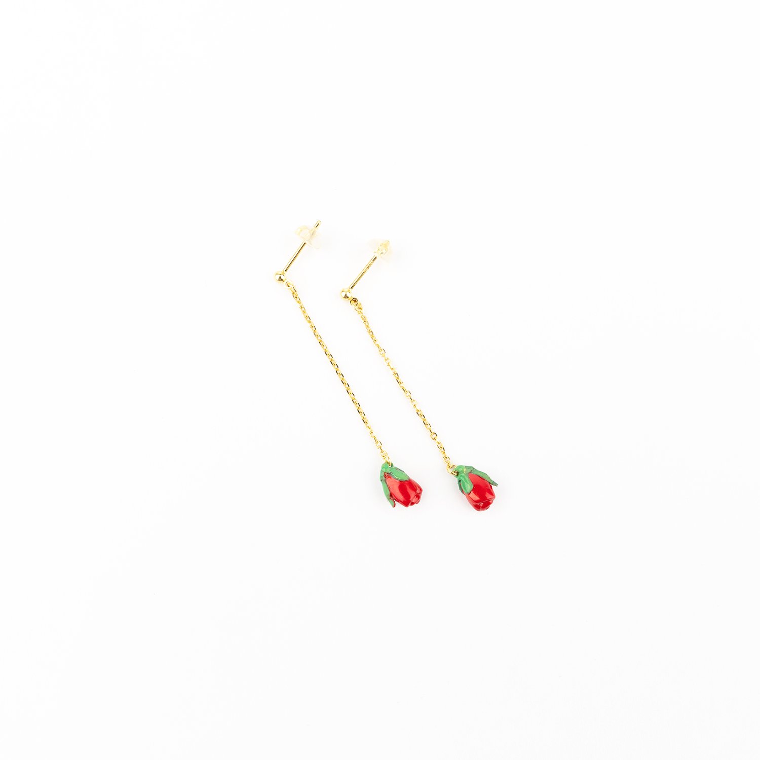 ◇イエローゴールドチェーンピアス Ribbon Floral 各24,200円(税込)