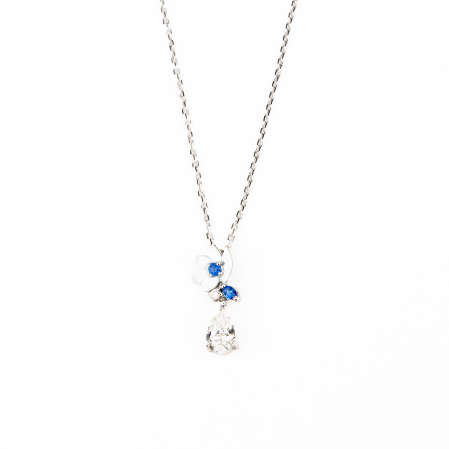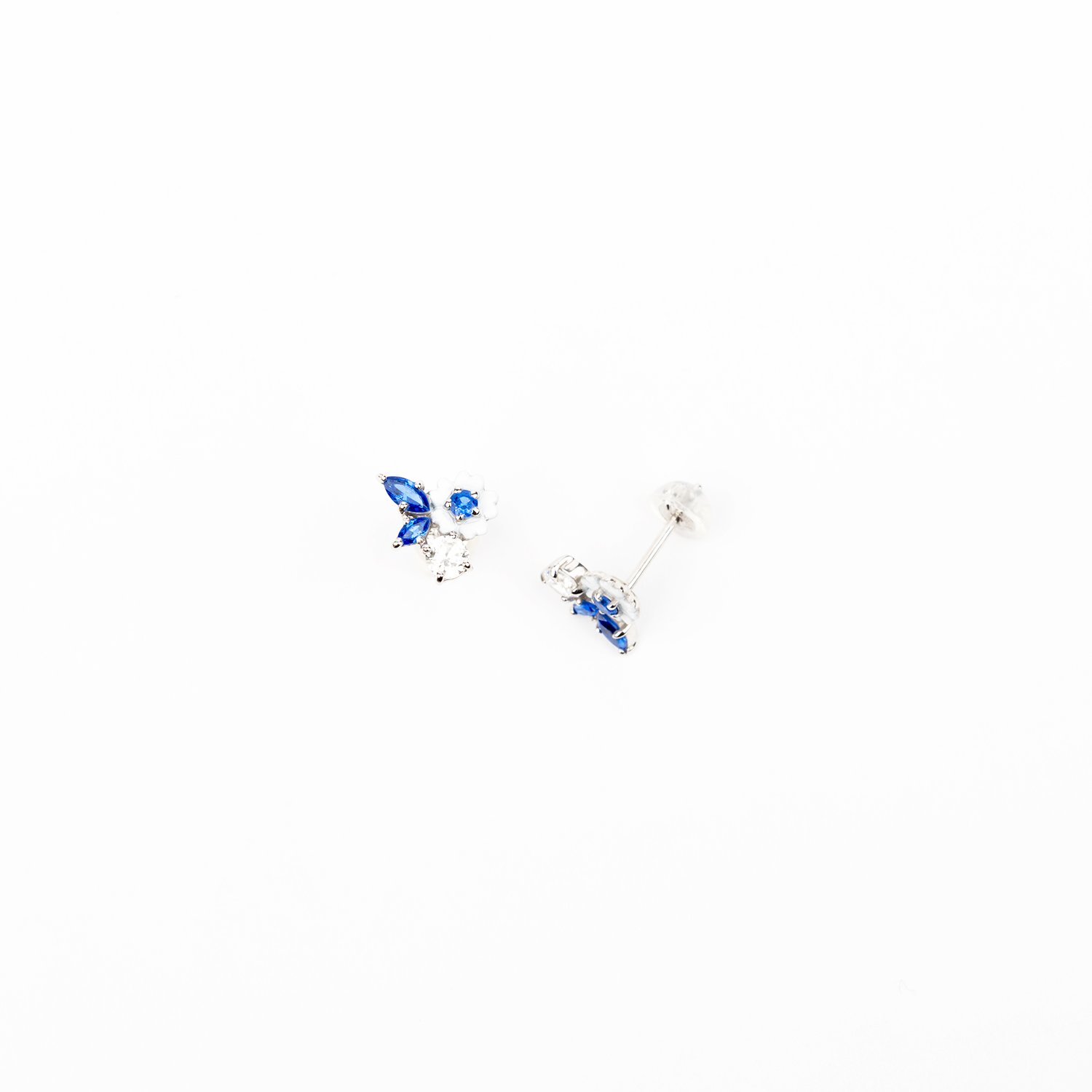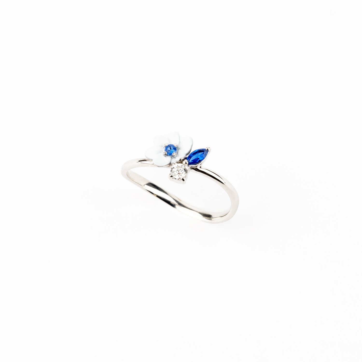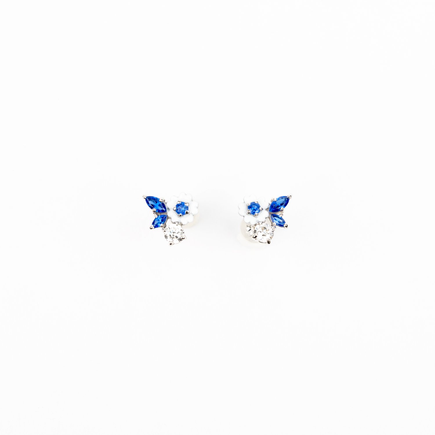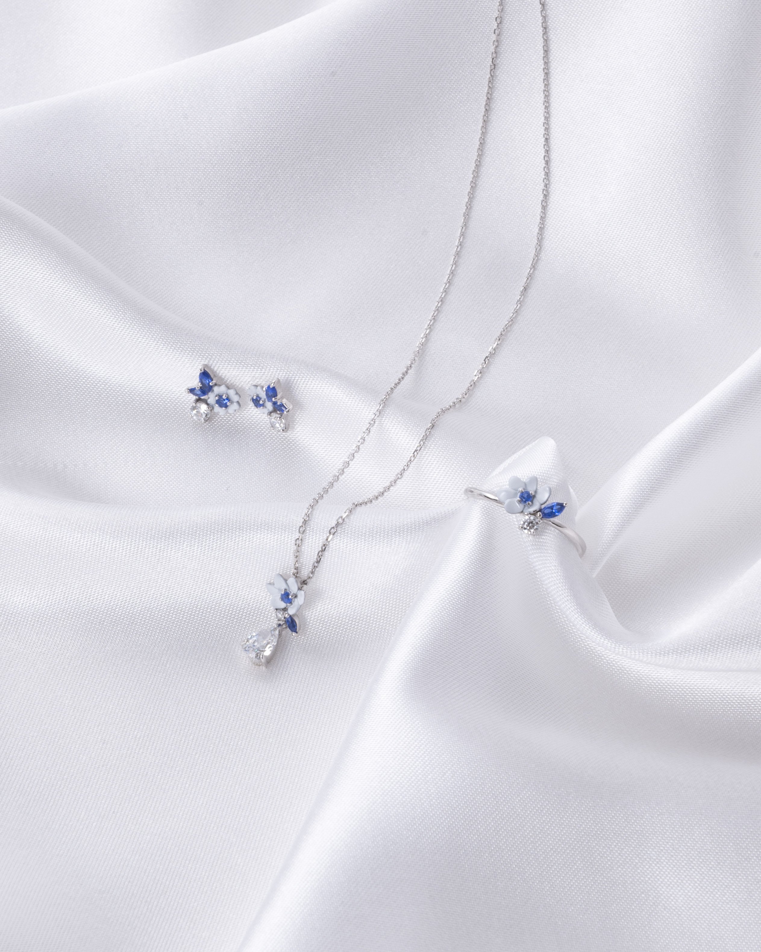 Cath KidstonのオリジナルアートRoad Floralをモチーフにしたシリーズは、 SLV925にロジウムコーティングを素材に、自然な光沢を添えるサファイアブルーのナノジェムと、キュービックジルコニアが品よく輝きます。