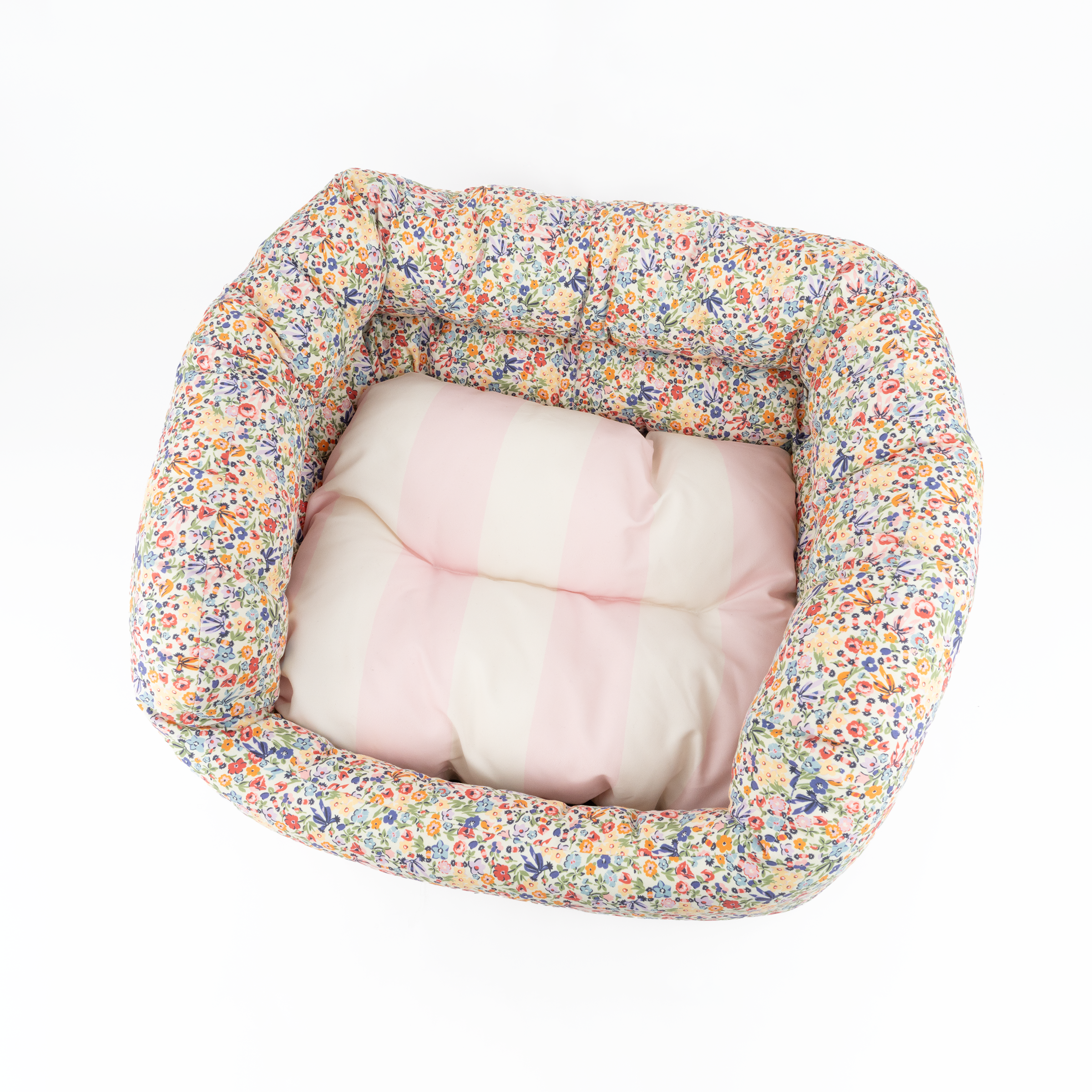 愛犬・愛猫が安らげるペットベッドは、大人気のHarmony Ditsy柄。お部屋に馴染みやすいスクエア型(カドラー型)で、置き場所を選びません。また、中のクッションは取り外しができ、手洗いも可能なので、いつでも清潔に保てます。底面には滑り止め付き。お部屋に置くだけでインテリアを華やかに彩ります。