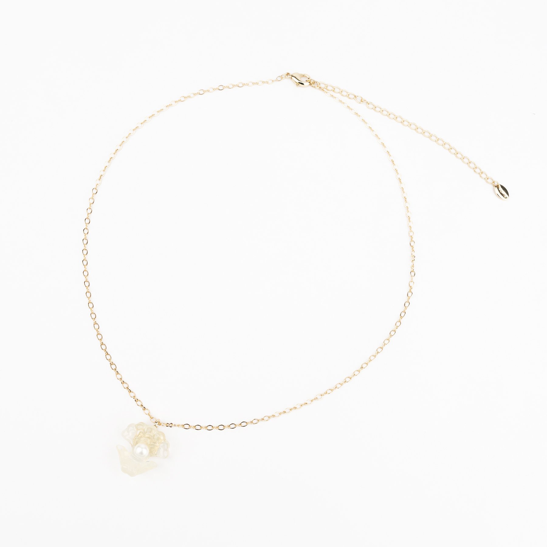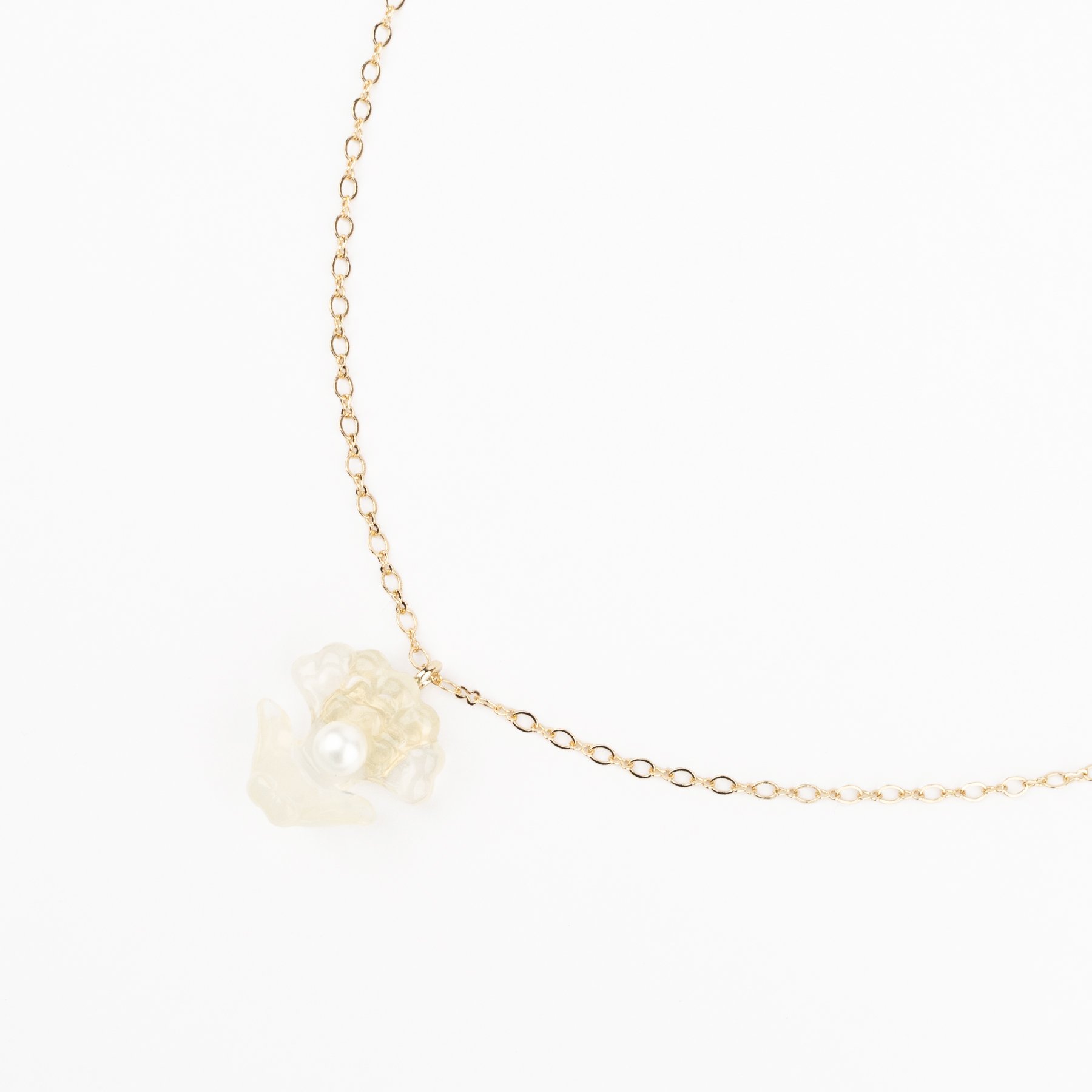 ネックレスは小粒ながら、シンプルなトップスに合わせれば、コーディネートに物語性と可愛らしさを添えてくれる、主役級の存在感をもつ一品です。